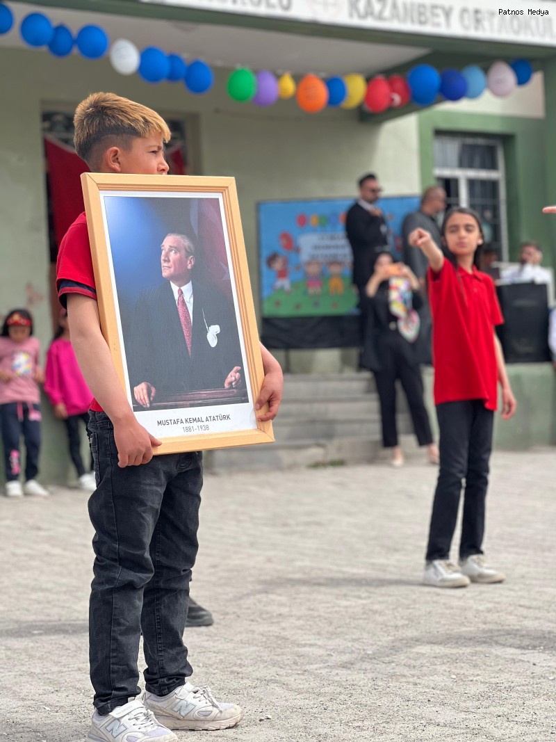 Ağrı'nın Patnos İlçesi Kazanbey İlkokul ve Ortaokulu’nda Cumhuriyet Bayramı’nın 101. yıl dönümü, öğrenciler, öğretmenler ve velilerin katılımıyla büyük bir coşkuyla kutlandı. Okul bahçesinde düzenlenen çeşitli etkinliklerle gerçekleştirilen kutlamalar, katılımcılar için unutulmaz anlara sahne oldu.Ellerinde Türk bayrakları ve Gazi Mustafa Kemal Atatürk’ün posterlerini taşıyan çocuklar, Cumhuriyet’e duydukları sevgi ve bağlılığı gururla ifade etti. Etkinlik alanında bir araya gelen çocukların enerjisi ve heyecanı, milli bayramların çocukların hafızasında özel bir yer edindiğini gösterirken, Cumhuriyet’in nesilden nesile aktarılan bir değer olduğunu bir kez daha gözler önüne serdi.Milli Birlik ve Beraberlik Ruhu CanlandıKutlamalar boyunca öğretmenler ve okul idaresi, çocukların yanlarında olarak bu anlamlı günün coşkusunu onlarla paylaştı. Öğrenciler, bağımsızlık ve Cumhuriyet’in kazanımlarını coşkulu marşlar eşliğinde yâd ederek milli birlik ve beraberlik duygularını pekiştirdi. Bayraklarla donatılan okul bahçesi, yapılan etkinliklerle adeta bir bayram alanına dönüştü.Etkinliklerle Cumhuriyet Ruhu YaşatıldıOkul bahçesinde gerçekleştirilen gösteriler ve etkinlikler, çocukların Cumhuriyet değerlerini daha derin bir anlayışla benimsemelerini sağladı. Her sınıfın hazırladığı özel gösteriler, Cumhuriyet tarihine ve Gazi Mustafa Kemal Atatürk’ün mirasına olan saygıyı ortaya koyarken, veliler de bu anlamlı anlarda çocuklarının yanında bulunarak destek verdi. Öğrencilerin gösterdiği performanslar, veliler ve öğretmenler tarafından büyük bir takdirle karşılandı.
