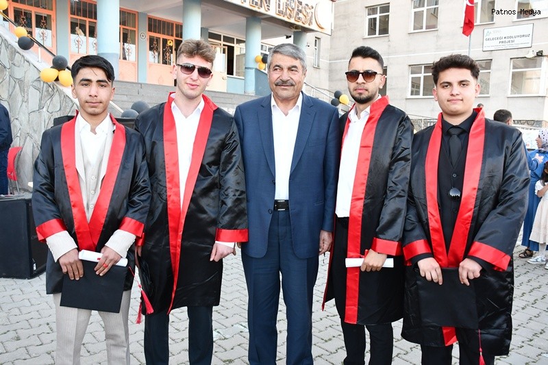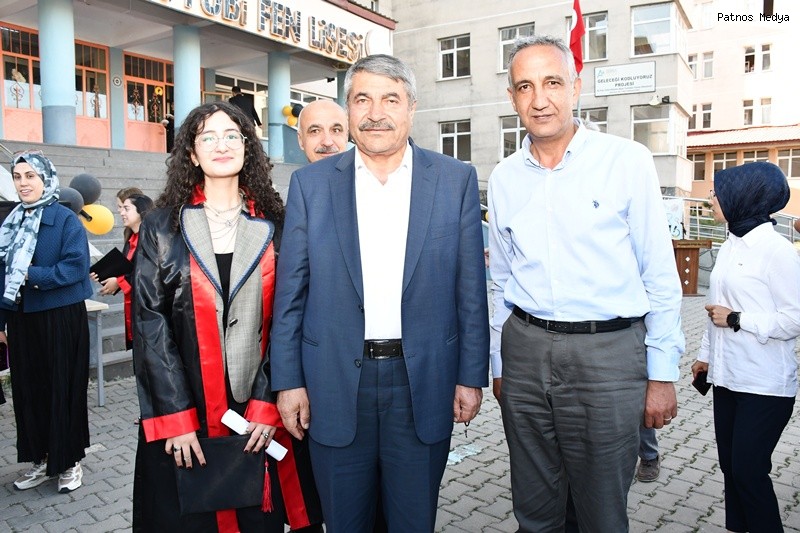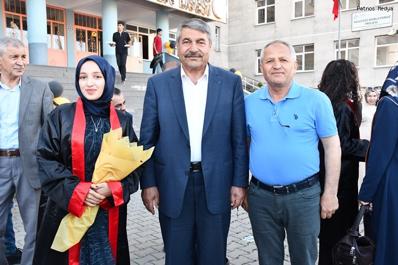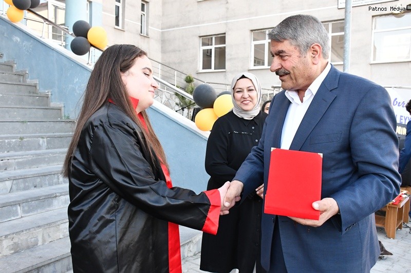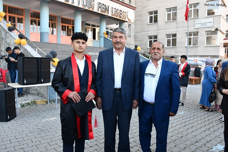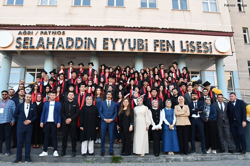 Ağrı'nın Patnos ilçesinde eğitim veren Selahaddin Eyyubi Fen Lisesi, 2024-2025 eğitim öğretim yılı mezuniyet töreniyle öğrencilerini geleceğe uğurladı.Törene; Patnos Belediye Başkanı Abdulhalık Taşkın, Ak Parti İlçe Başkanı Çetin Taşdemir, Milli Eğitim Şube Müdürü Zeynep Oğuz Çam, Patnos Gençlik ve Spor İlçe Müdürümüz Fatih Alpaslan, Patnos Esnaf Odası Başkanı Süleyman Laçin, Ziraat Odası Başkanı Hakan Hakverdi, Şoförler Cemiyeti Başkanı Mehmet Ali Çarboğa ve çok sayıda veli katılım sağladı.Etkinlik kapsamında yaş pasta kesildi, öğrencilerle hatıra fotoğrafları çekildi. Müzik ve eğlence programlarıyla renklendirilen tören, unutulmaz anlara sahne oldu.Mezuniyet heyecanı yaşayan öğrenciler, kep atma töreni öncesinde bol bol fotoğraf çektirerek anı ölümsüzleştirdi.Okul Müdürü Mehmet Akif Dadaş, programa katılan protokole ve velilere teşekkür ederek, tüm mezun öğrencilere hayatlarında başarılar diledi.Patnos Belediye Başkanı Abdulhalık Taşkın ise yaptığı konuşmada şu ifadelere yer verdi: